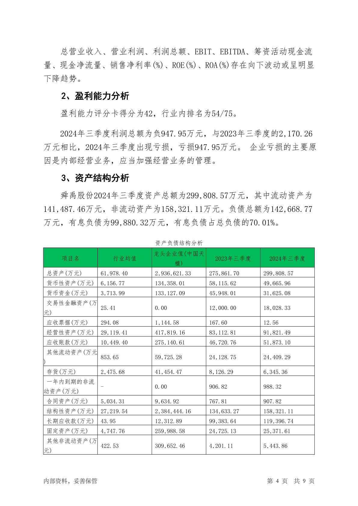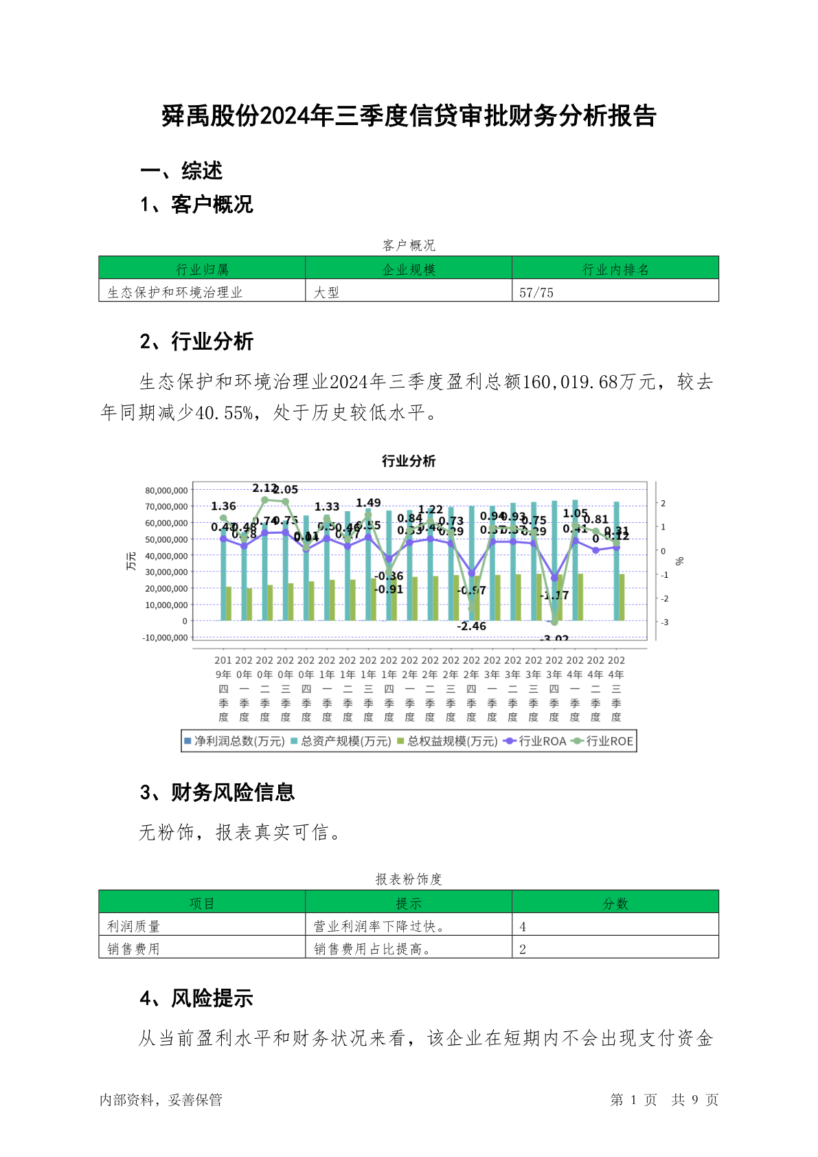 301519舜禹股份2024年三季度信贷审批财务分析报告