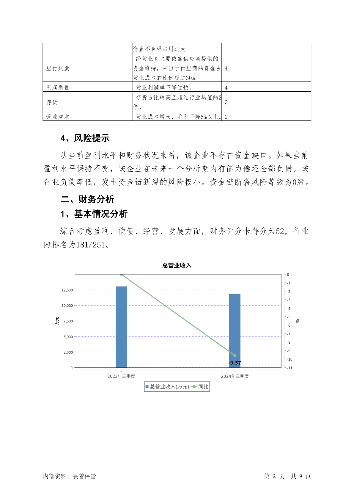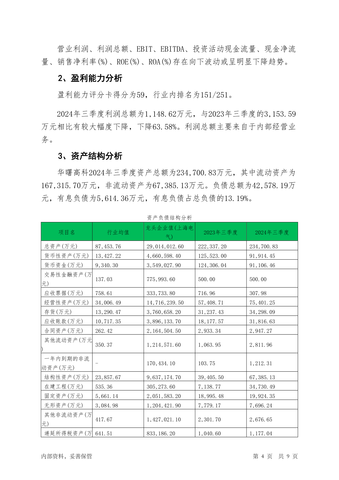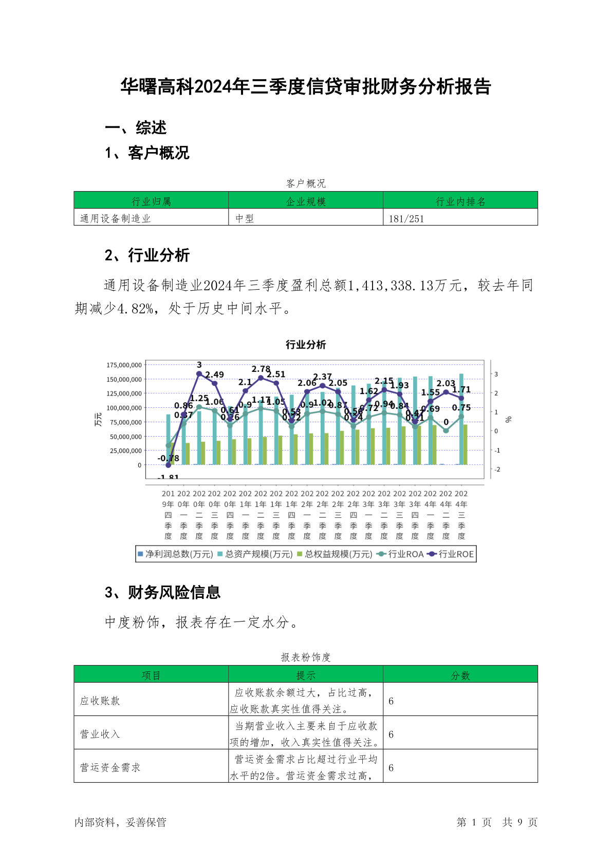 688433华曙高科2024年三季度信贷审批财务分析报告