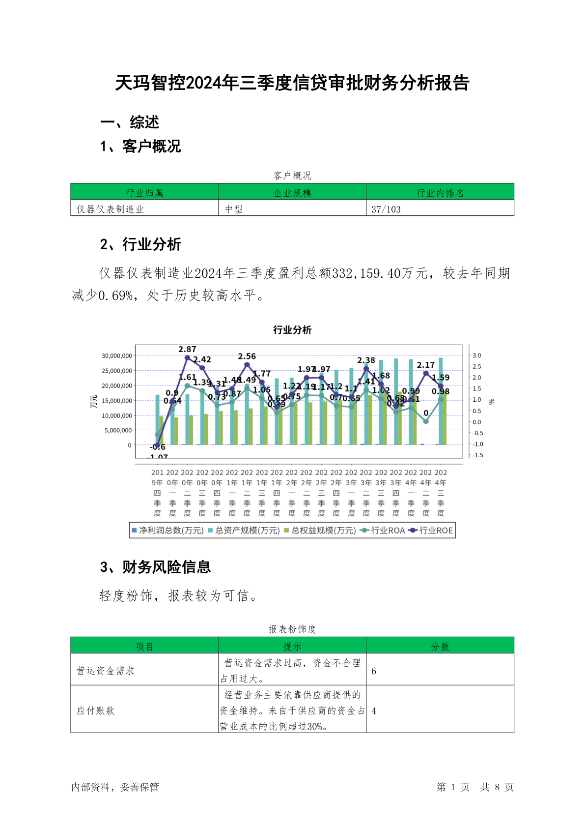 688570天玛智控2024年三季度信贷审批财务分析报告
