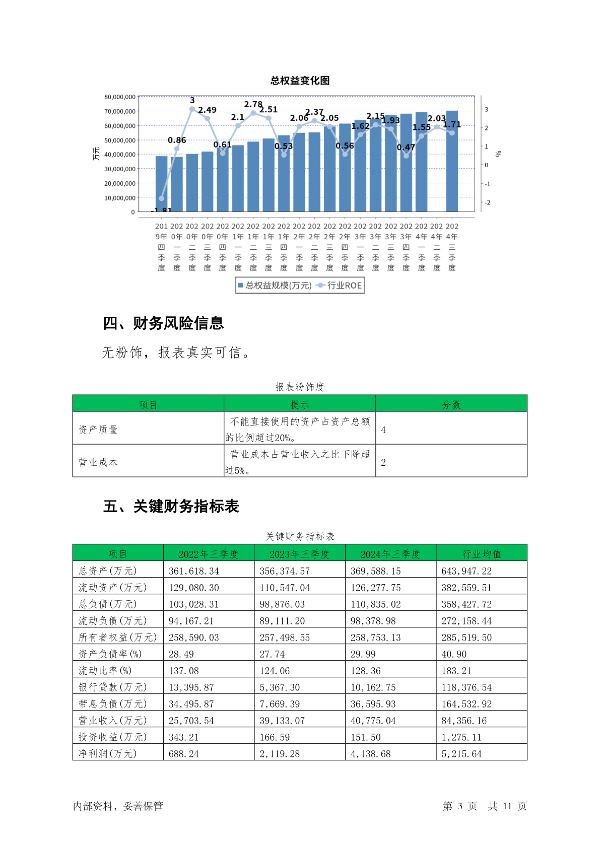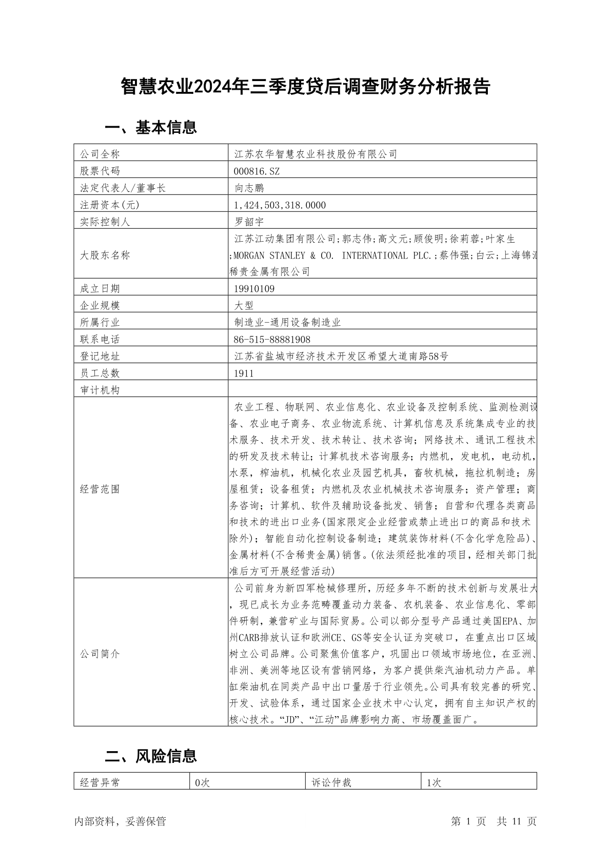 000816智慧农业2024年三季度贷后调查财务分析报告