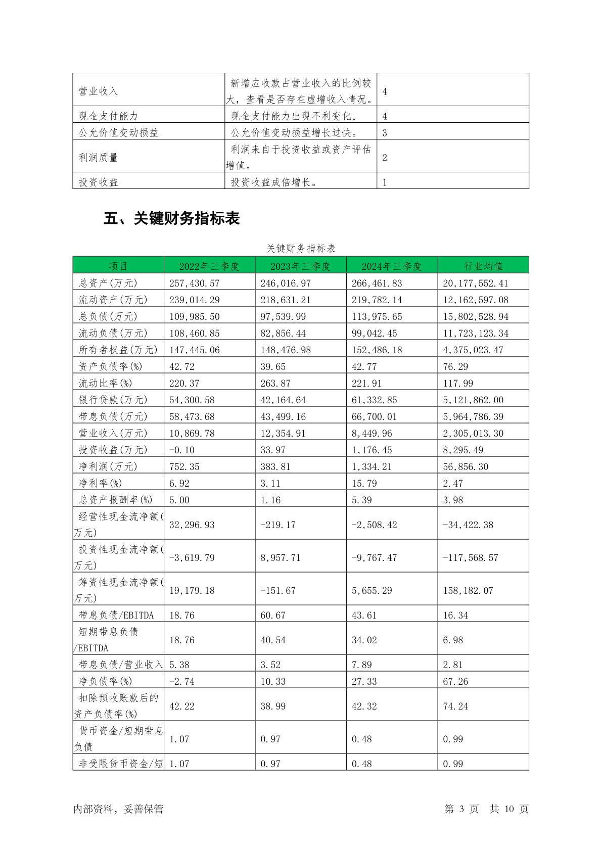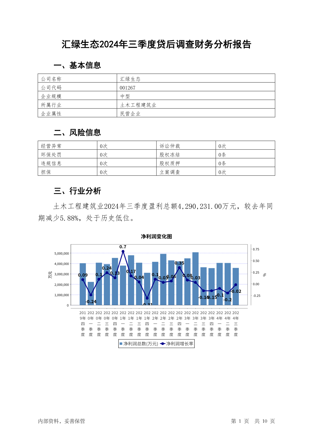 001267汇绿生态2024年三季度贷后调查财务分析报告