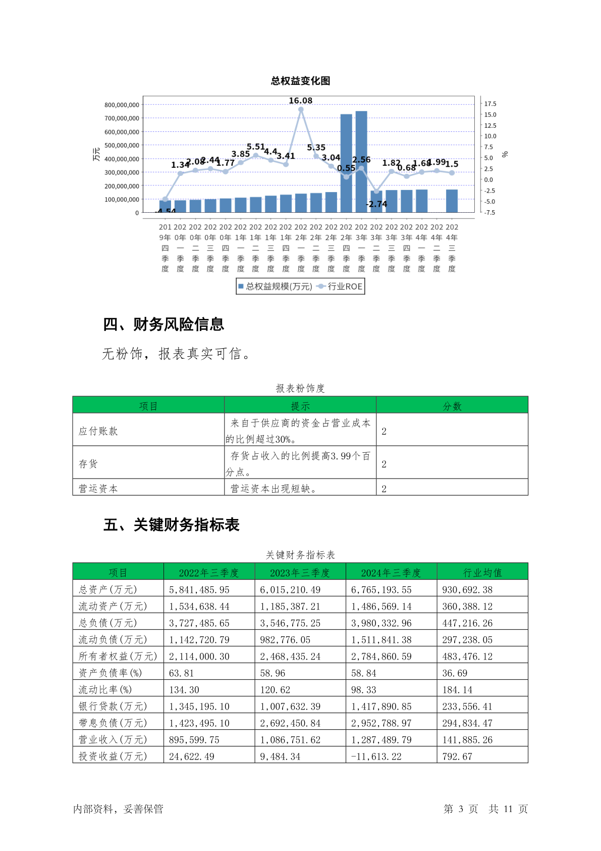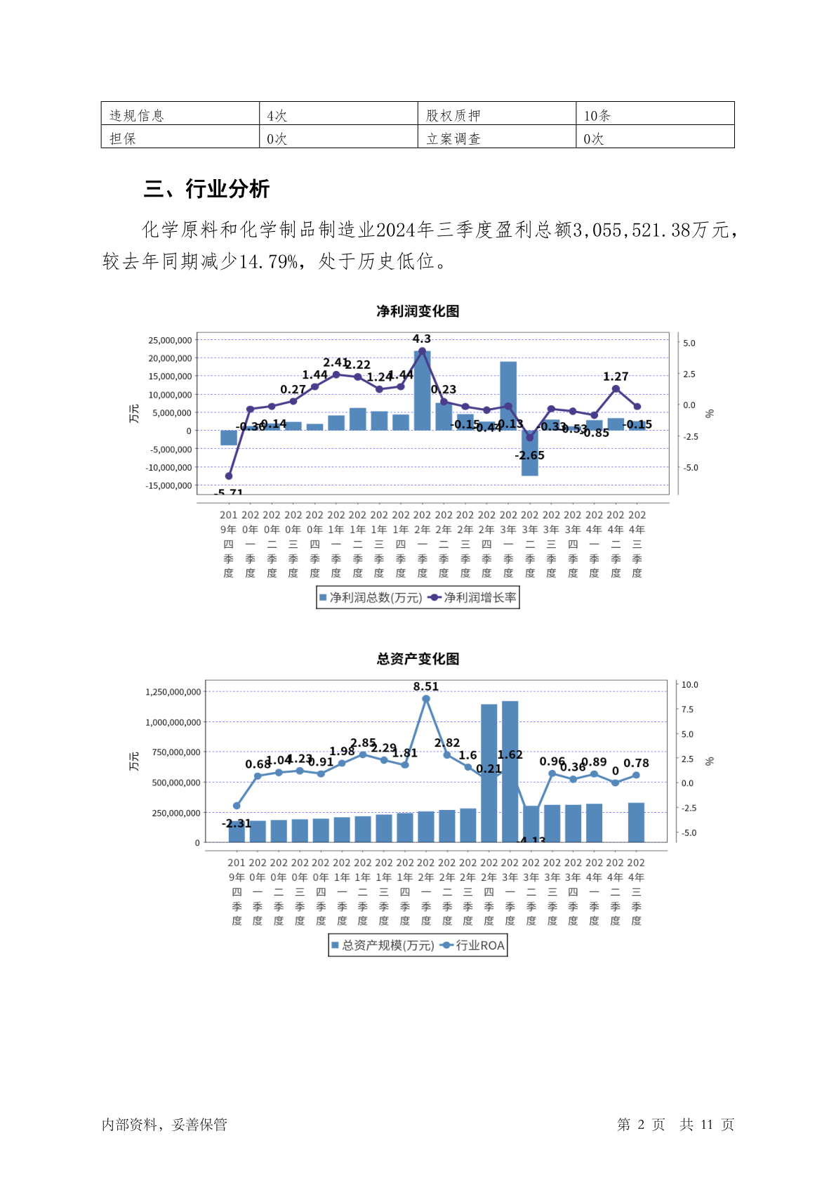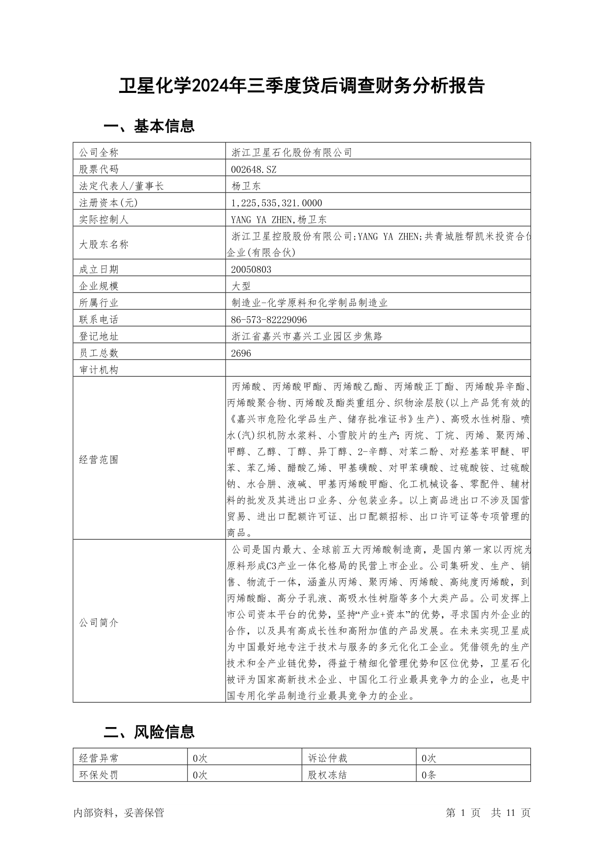 002648卫星化学2024年三季度贷后调查财务分析报告