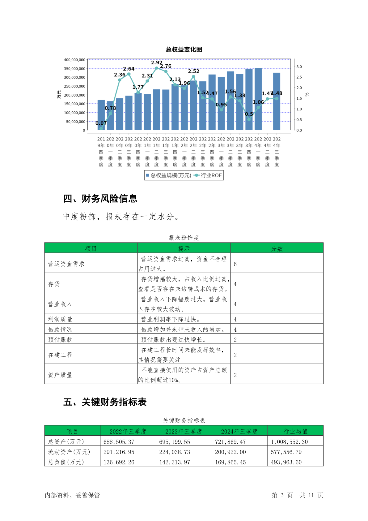 300456赛微电子2024年三季度贷后调查财务分析报告