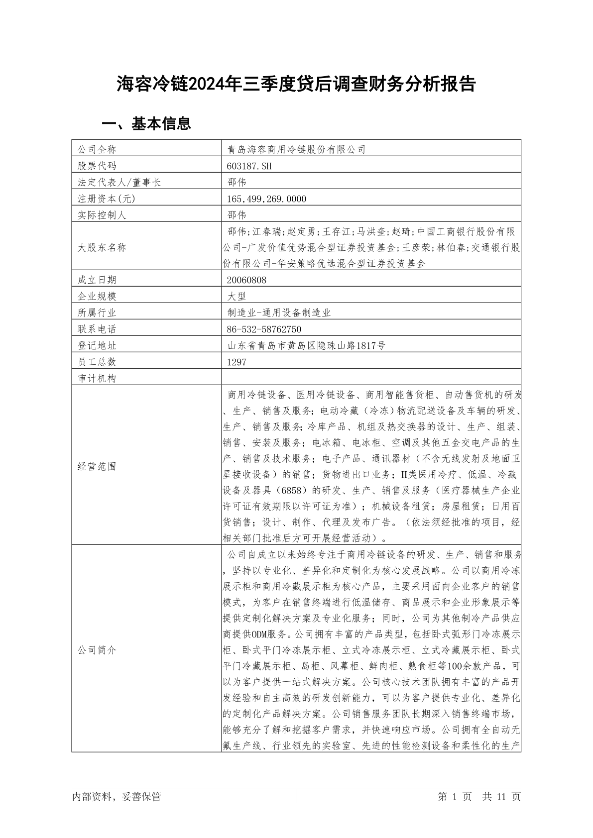 603187海容冷链2024年三季度贷后调查财务分析报告