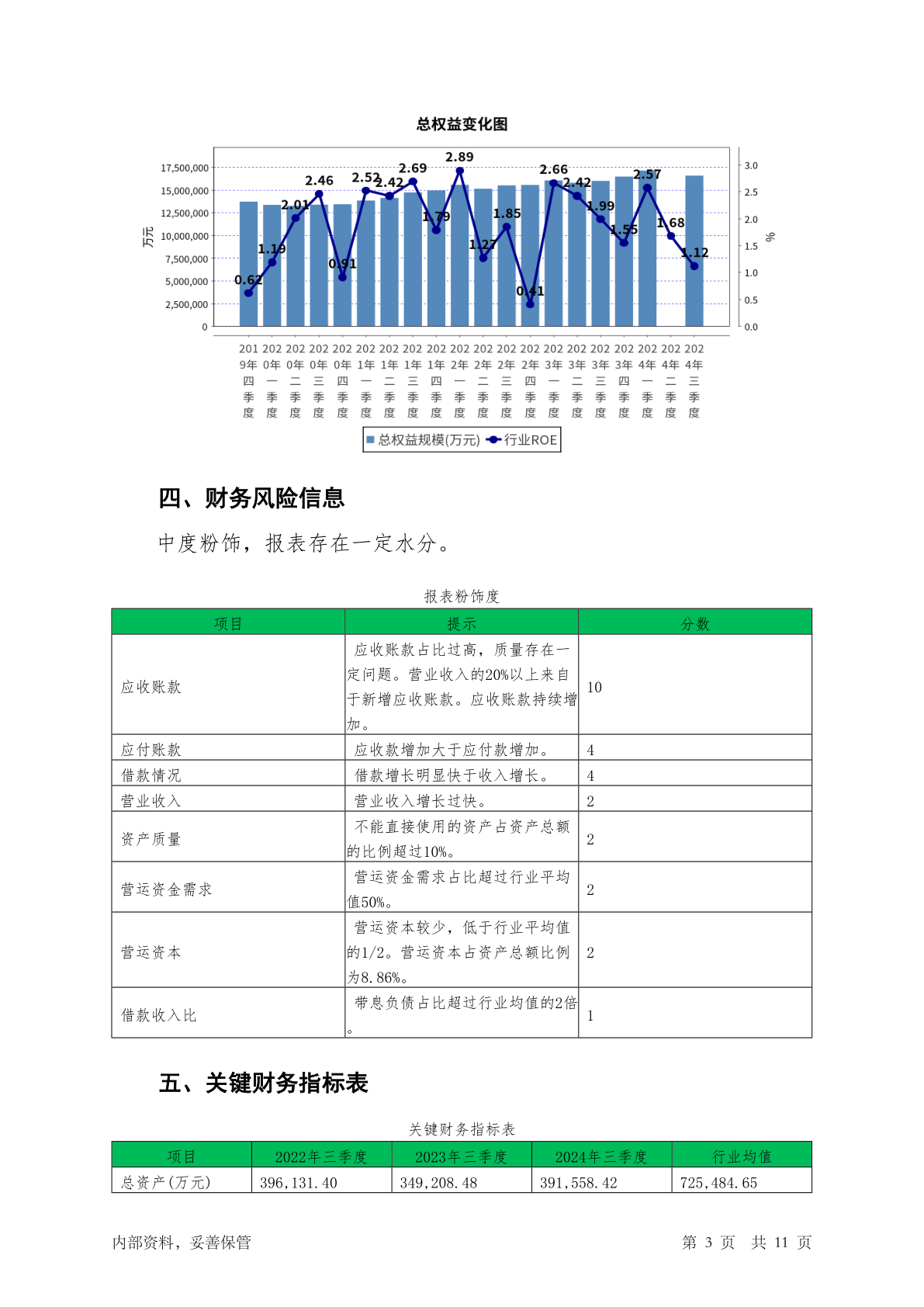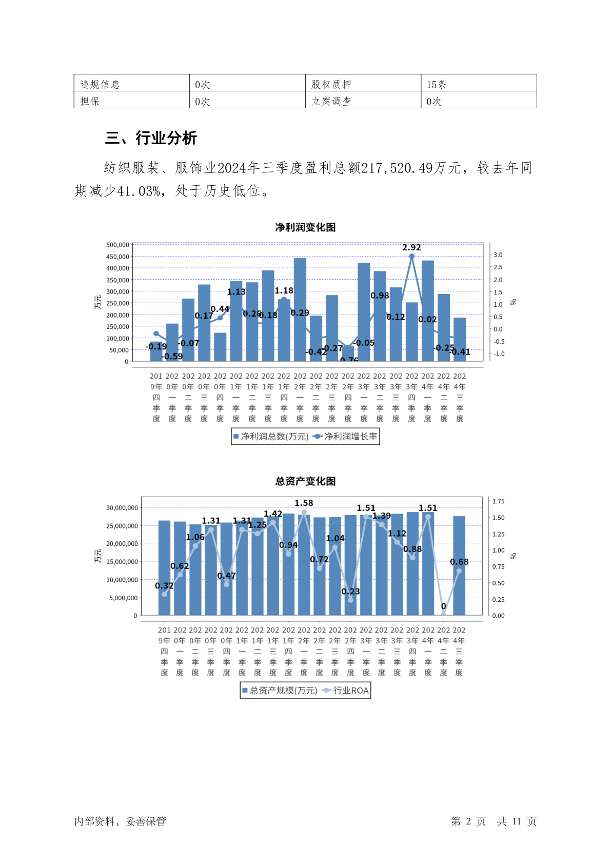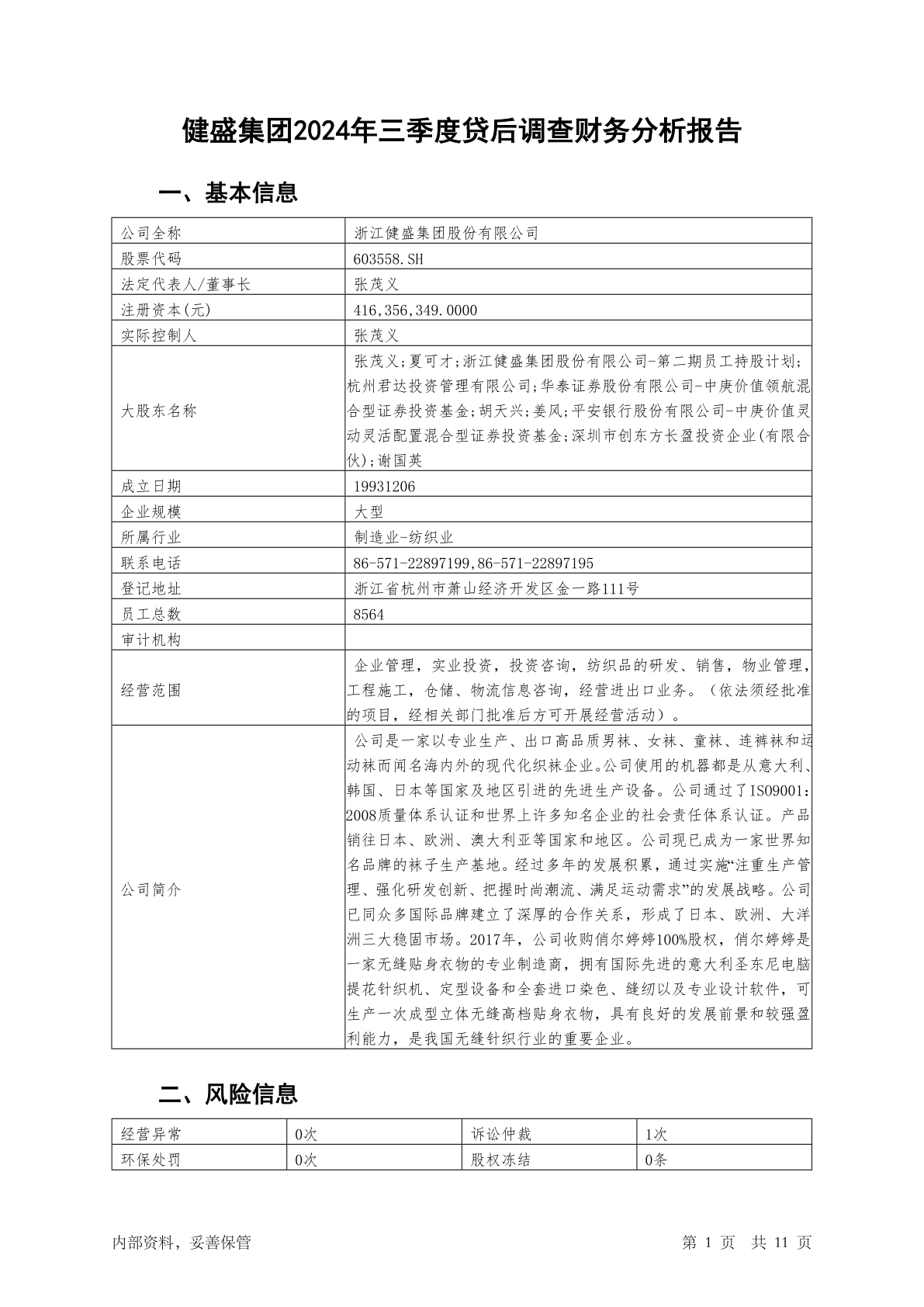 603558健盛集团2024年三季度贷后调查财务分析报告