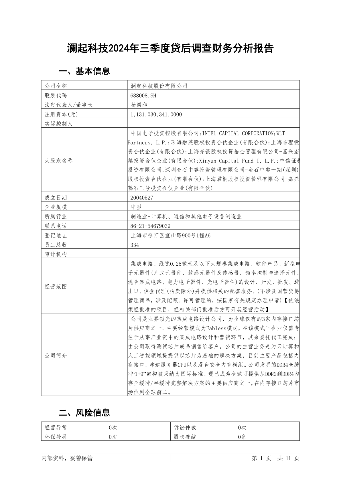 688008澜起科技2024年三季度贷后调查财务分析报告