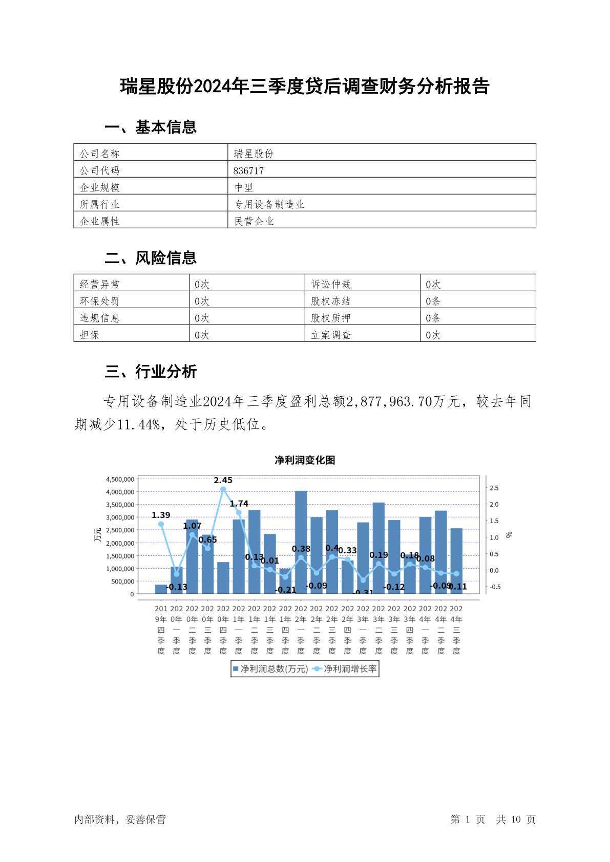 836717瑞星股份2024年三季度贷后调查财务分析报告