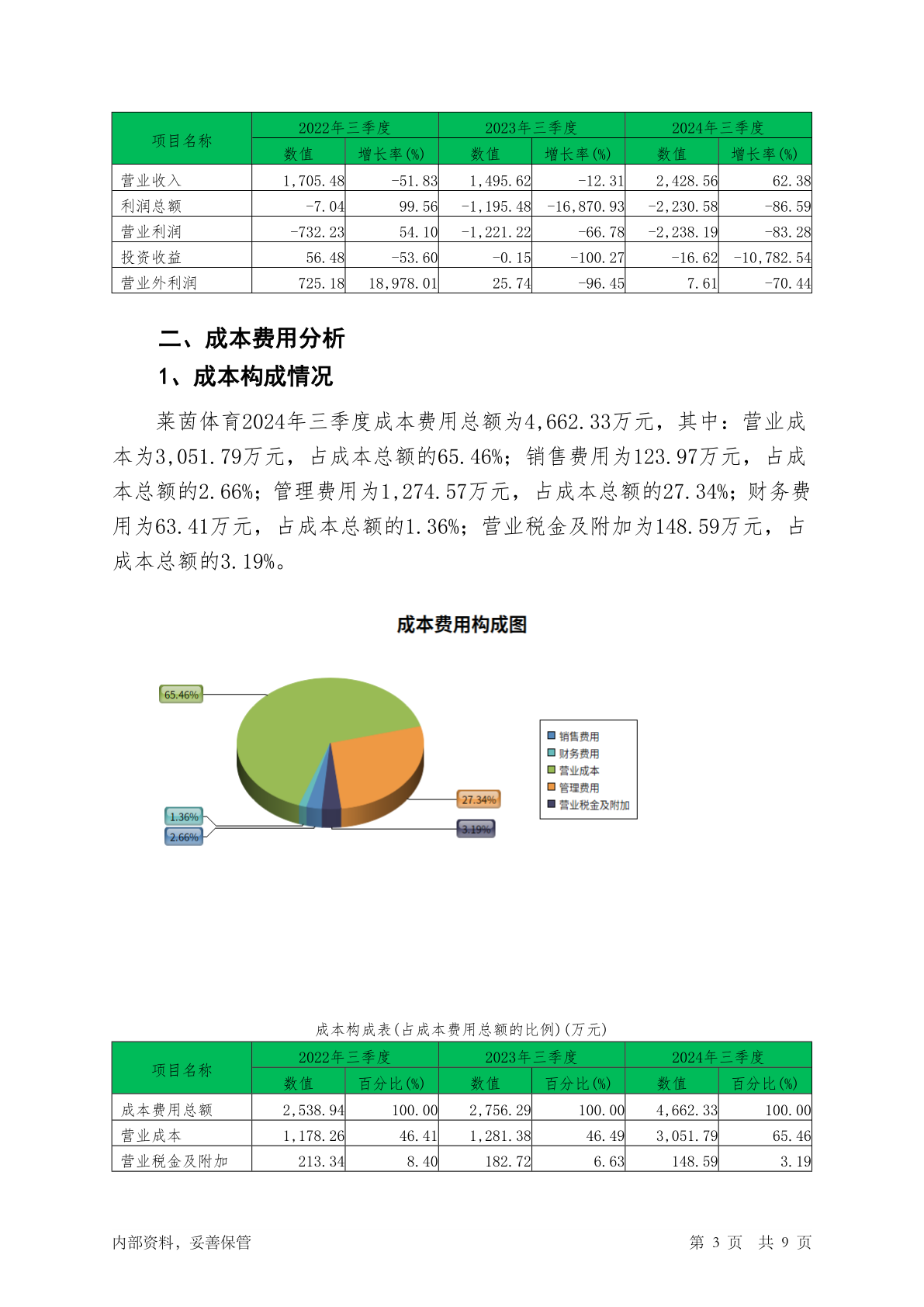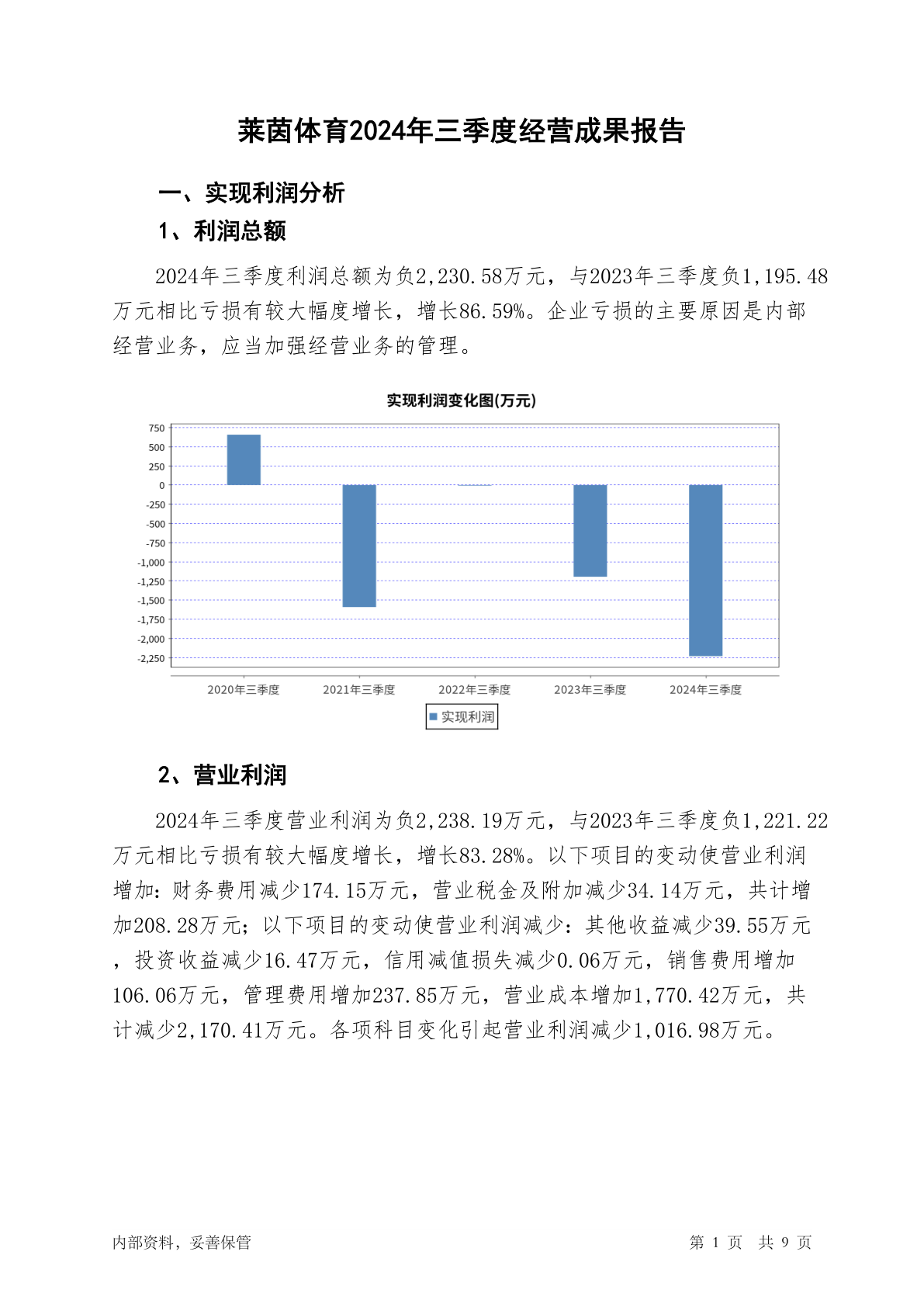 000558莱茵体育2024年三季度经营成果报告