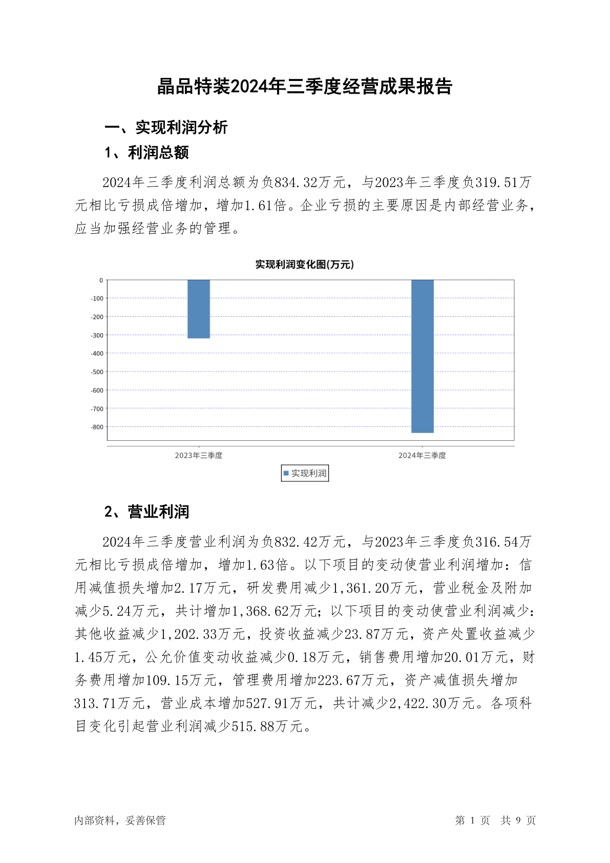 688084晶品特装2024年三季度经营成果报告