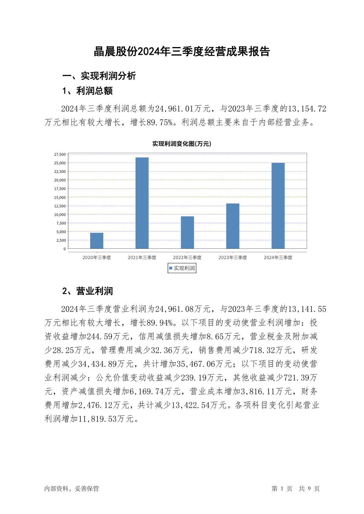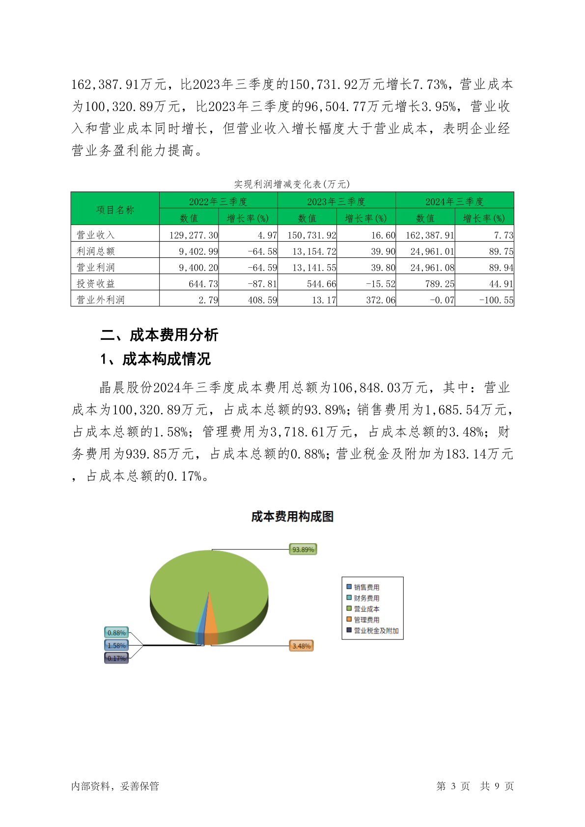 688099晶晨股份2024年三季度经营成果报告