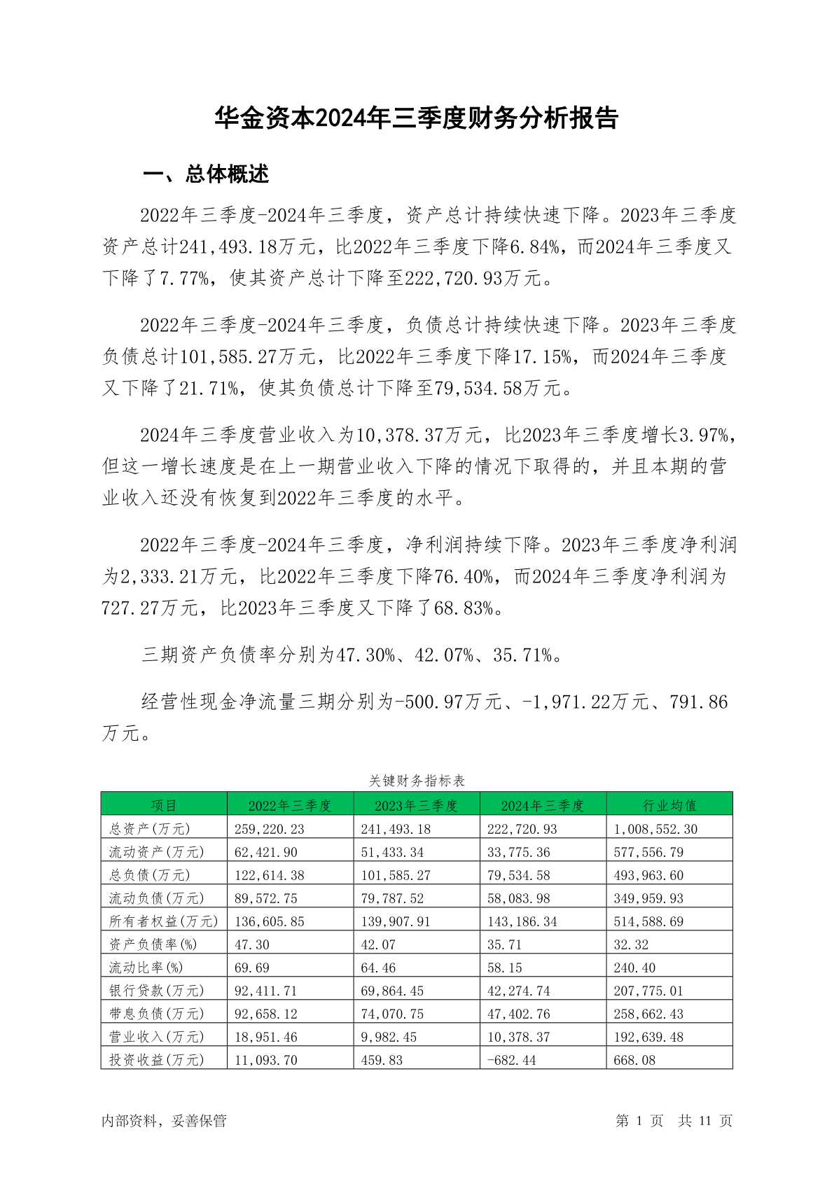 000532华金资本2024年三季度财务分析报告-银行版