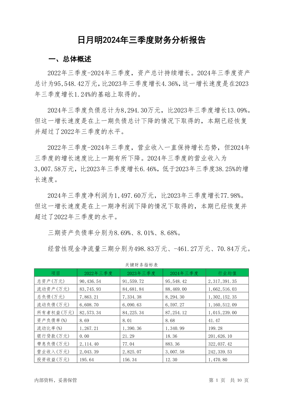 300906日月明2024年三季度财务分析报告-银行版