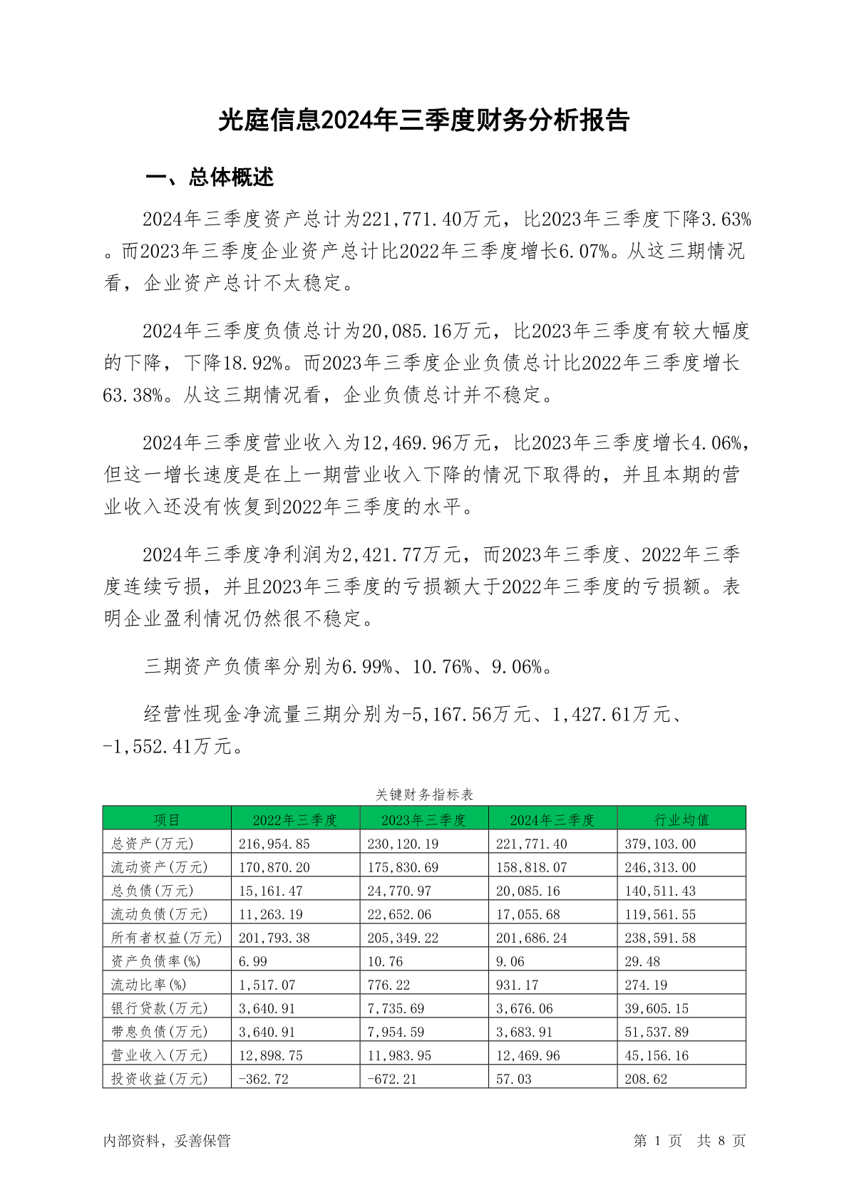 301221光庭信息2024年三季度财务分析报告-银行版