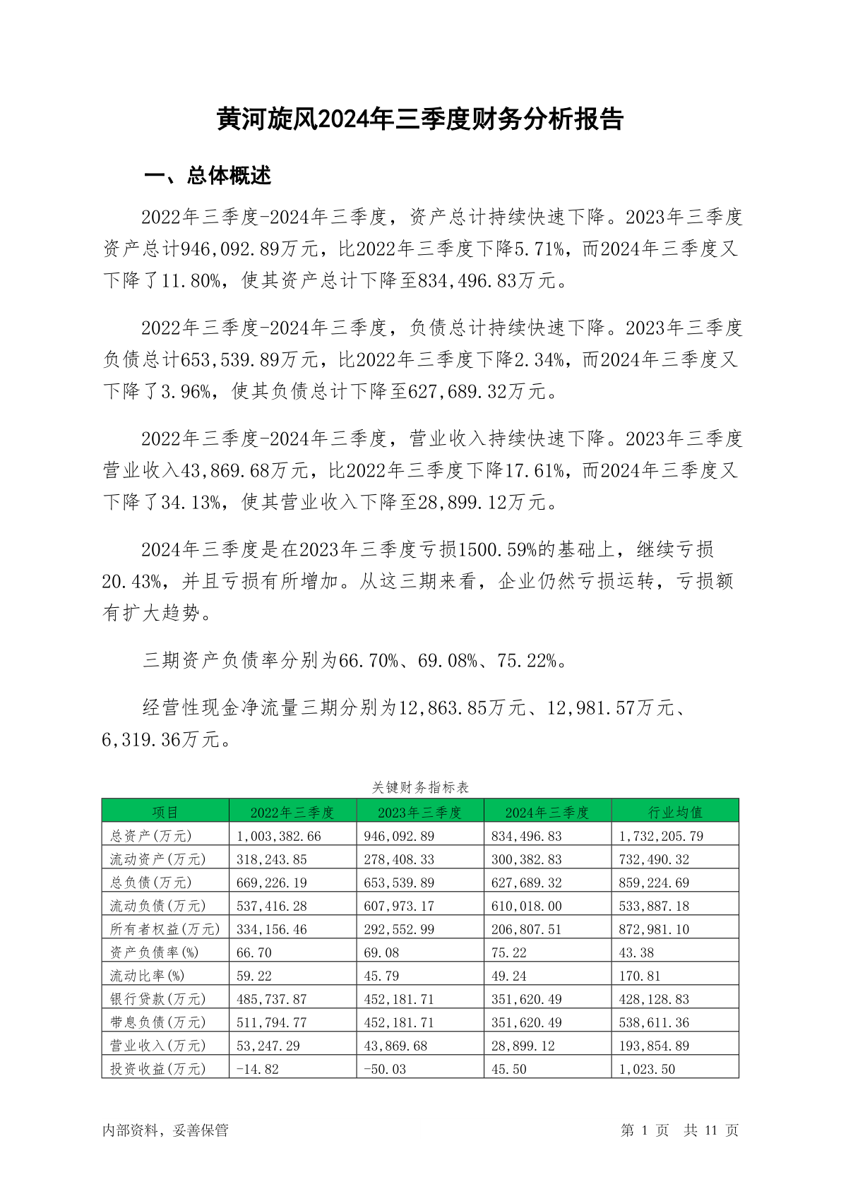 600172黄河旋风2024年三季度财务分析报告-银行版
