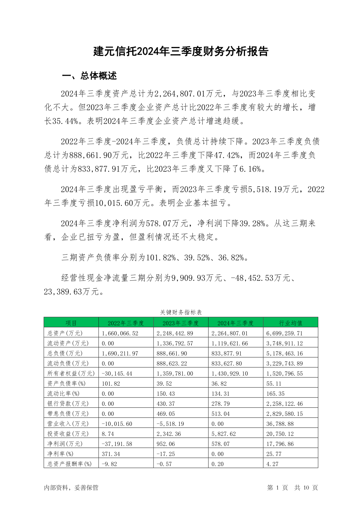 600816建元信托2024年三季度财务分析报告-银行版