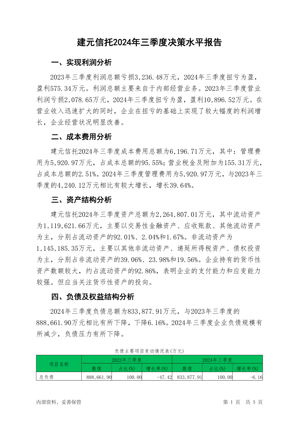 600816建元信托2024年三季度决策水平分析报告