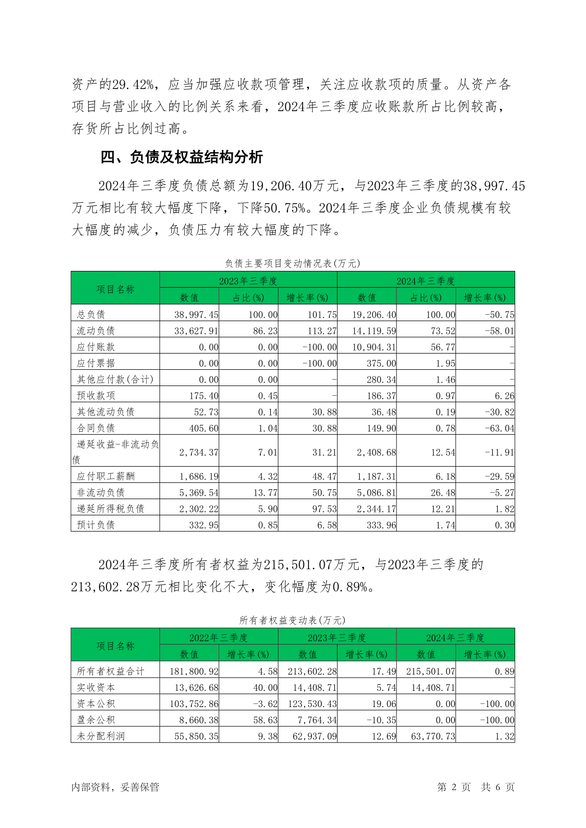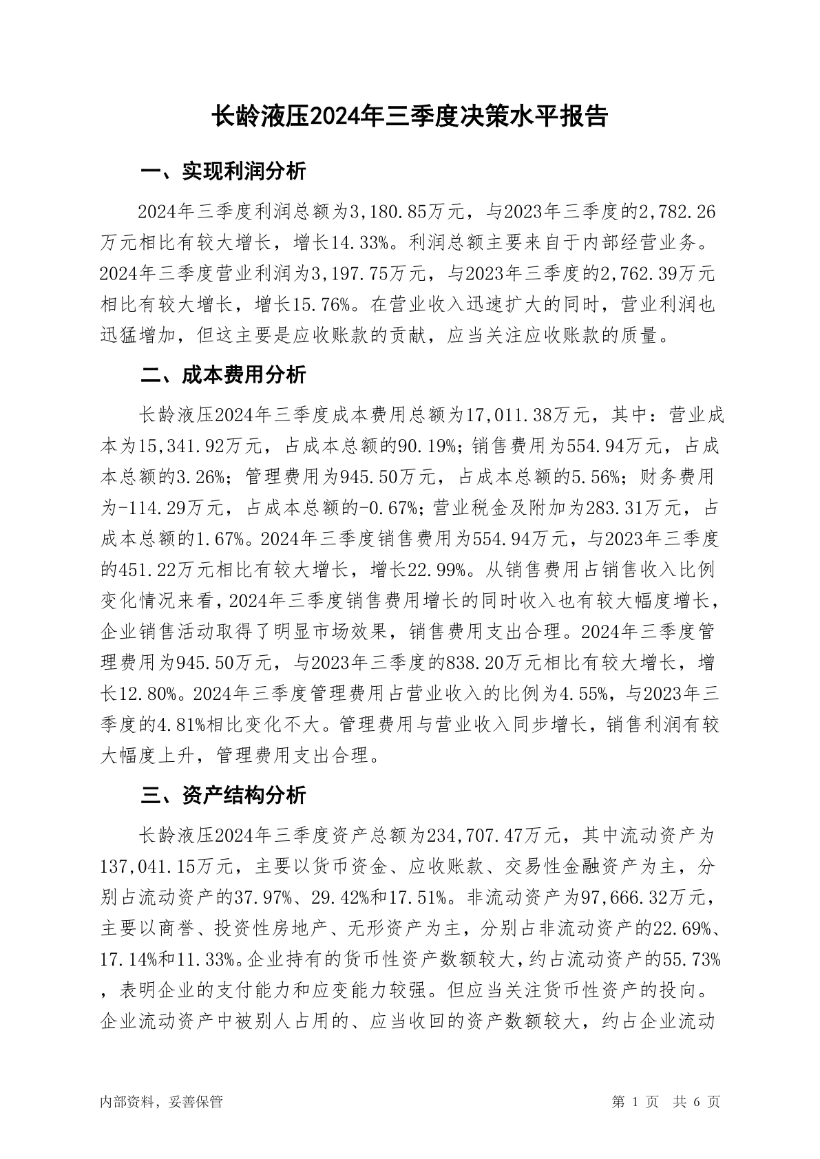 605389长龄液压2024年三季度决策水平分析报告