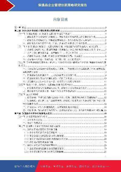 保健品市场前景预测与资本运作策略研究报告本报告在大量周密的市场调研基础上,依据国家统计局、相关行业协会及专业研究单位等公布和提供的大量数据,采用多种研究方法,结合盛世华研监测数据及知识体系,对行业发展进行详细的阐述和深入的分析,并在此基础上提出企业未来发展战略、市场竞争战略等实战研究成果,为企业在未来发展战略、投资布局等提供可参考的路径与方向。2024年发布时间:2024-03-22