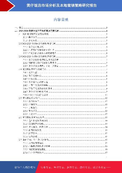 - 煲仔饭店市场前景预测与本地营销策略研究报告本报告在大量周密的市场调研基础上,依据国家统计局、相关行业协会及专业研究单位等公布和提供的大量数据,采用多种研究方法,结合盛世华研监测数据及知识体系,对行业发展进行详细的阐述和深入的分析,并在此基础上提出企业未来发展战略、市场竞争战略等实战研究成果,为企业在未来发展战略、投资布局等提供可参考的路径与方向。2023年发布时间:2023-10-22
