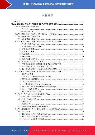 - 薄膜电容器制造设备市场前景预测与采购成本控制策略研究报告本报告在大量周密的市场调研基础上,依据国家统计局、相关行业协会及专业研究单位等公布和提供的大量数据,采用多种研究方法,结合盛世华研监测数据及知识体系,对行业发展进行详细的阐述和深入的分析,并在此基础上提出企业未来发展战略、市场竞争战略等实战研究成果,为企业在未来发展战略、投资布局等提供可参考的路径与方向。2024年发布时间:2024-03-22