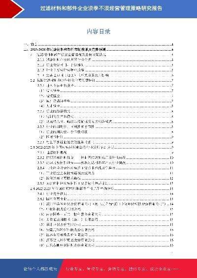 - 过滤材料和部件企业淡季不淡经营管理策略研究报告本报告在大量周密的市场调研基础上,依据国家统计局、相关行业协会及专业研究单位等公布和提供的大量数据,采用多种研究方法,结合盛世华研监测数据及知识体系,对行业发展进行详细的阐述和深入的分析,并在此基础上提出企业未来发展战略、市场竞争战略等实战研究成果,为企业在未来发展战略、投资布局等提供可参考的路径与方向。2023年发布时间:2023-08-12