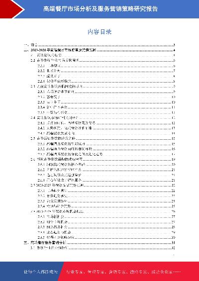 - 高端餐厅市场前景预测与服务营销策略研究报告本报告在大量周密的市场调研基础上,依据国家统计局、相关行业协会及专业研究单位等公布和提供的大量数据,采用多种研究方法,结合盛世华研监测数据及知识体系,对行业发展进行详细的阐述和深入的分析,并在此基础上提出企业未来发展战略、市场竞争战略等实战研究成果,为企业在未来发展战略、投资布局等提供可参考的路径与方向。2023年发布时间:2023-06-12