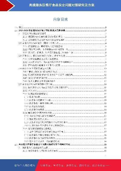 - 高速服务区餐厅市场前景预测与食品安全研究报告本报告在大量周密的市场调研基础上,依据国家统计局、相关行业协会及专业研究单位等公布和提供的大量数据,采用多种研究方法,结合盛世华研监测数据及知识体系,对行业发展进行详细的阐述和深入的分析,并在此基础上提出企业未来发展战略、市场竞争战略等实战研究成果,为企业在未来发展战略、投资布局等提供可参考的路径与方向。2023年发布时间:2023-08-19