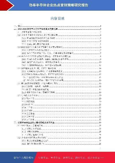 - 功率半导体市场前景预测与热点营销策略研究报告本报告在大量周密的市场调研基础上,依据国家统计局、相关行业协会及专业研究单位等公布和提供的大量数据,采用多种研究方法,结合盛世华研监测数据及知识体系,对行业发展进行详细的阐述和深入的分析,并在此基础上提出企业未来发展战略、市场竞争战略等实战研究成果,为企业在未来发展战略、投资布局等提供可参考的路径与方向。2023年发布时间:2023-07-03