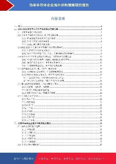 - 功率半导体市场前景预测与海外并购策略研究报告本报告在大量周密的市场调研基础上,依据国家统计局、相关行业协会及专业研究单位等公布和提供的大量数据,采用多种研究方法,结合盛世华研监测数据及知识体系,对行业发展进行详细的阐述和深入的分析,并在此基础上提出企业未来发展战略、市场竞争战略等实战研究成果,为企业在未来发展战略、投资布局等提供可参考的路径与方向。2023年发布时间:2023-07-03