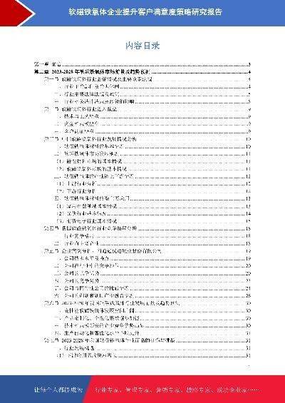 - 软磁铁氧体企业提升客户满意度策略研究报告本报告在大量周密的市场调研基础上,依据国家统计局、相关行业协会及专业研究单位等公布和提供的大量数据,采用多种研究方法,结合盛世华研监测数据及知识体系,对行业发展进行详细的阐述和深入的分析,并在此基础上提出企业未来发展战略、市场竞争战略等实战研究成果,为企业在未来发展战略、投资布局等提供可参考的路径与方向。2024年发布时间:2024-09-29