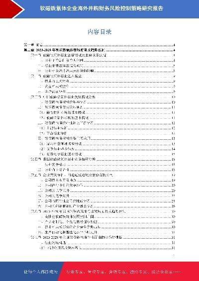 - 软磁铁氧体企业海外并购财务风险控制策略研究报告本报告在大量周密的市场调研基础上,依据国家统计局、相关行业协会及专业研究单位等公布和提供的大量数据,采用多种研究方法,结合盛世华研监测数据及知识体系,对行业发展进行详细的阐述和深入的分析,并在此基础上提出企业未来发展战略、市场竞争战略等实战研究成果,为企业在未来发展战略、投资布局等提供可参考的路径与方向。2024年发布时间:2024-07-02