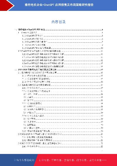 - 微特电机企业+ChatGPT布局策略研究报告本报告在大量周密的市场调研基础上,依据国家统计局、相关行业协会及专业研究单位等公布和提供的大量数据,采用多种研究方法,结合盛世华研监测数据及知识体系,对行业发展进行详细的阐述和深入的分析,并在此基础上提出企业未来发展战略、市场竞争战略等实战研究成果,为企业在未来发展战略、投资布局等提供可参考的路径与方向。2023年发布时间:2023-10-06