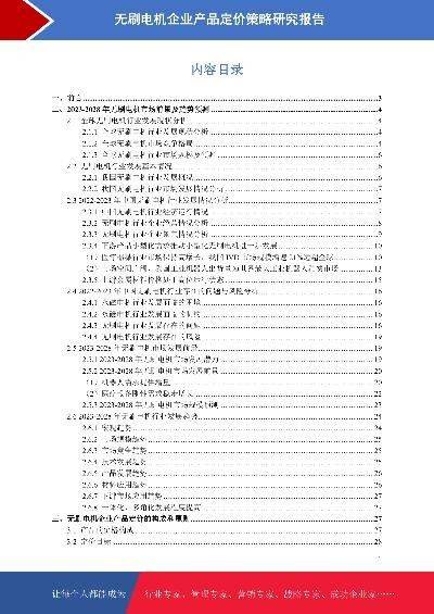 - 无刷电机企业产品定价原则及策略研究报告本报告在大量周密的市场调研基础上,依据国家统计局、相关行业协会及专业研究单位等公布和提供的大量数据,采用多种研究方法,结合盛世华研监测数据及知识体系,对行业发展进行详细的阐述和深入的分析,并在此基础上提出企业未来发展战略、市场竞争战略等实战研究成果,为企业在未来发展战略、投资布局等提供可参考的路径与方向。2024年发布时间:2024-07-02