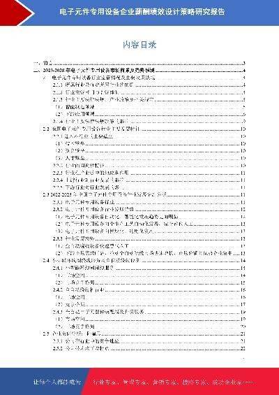 电子元件专用设备市场前景预测与薪酬绩效设计策略研究报告本报告在大量周密的市场调研基础上,依据国家统计局、相关行业协会及专业研究单位等公布和提供的大量数据,采用多种研究方法,结合盛世华研监测数据及知识体系,对行业发展进行详细的阐述和深入的分析,并在此基础上提出企业未来发展战略、市场竞争战略等实战研究成果,为企业在未来发展战略、投资布局等提供可参考的路径与方向。2023年发布时间:2023-07-03