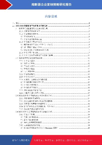 - 熔断器企业口碑营销引流策略研究报告本报告在大量周密的市场调研基础上,依据国家统计局、相关行业协会及专业研究单位等公布和提供的大量数据,采用多种研究方法,结合盛世华研监测数据及知识体系,对行业发展进行详细的阐述和深入的分析,并在此基础上提出企业未来发展战略、市场竞争战略等实战研究成果,为企业在未来发展战略、投资布局等提供可参考的路径与方向。2023年发布时间:2023-10-22