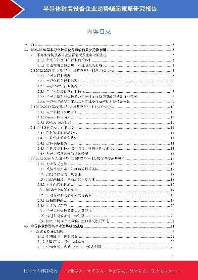 - 半导体封装设备企业可持续发展战略研究报告本报告在大量周密的市场调研基础上,依据国家统计局、相关行业协会及专业研究单位等公布和提供的大量数据,采用多种研究方法,结合盛世华研监测数据及知识体系,对行业发展进行详细的阐述和深入的分析,并在此基础上提出企业未来发展战略、市场竞争战略等实战研究成果,为企业在未来发展战略、投资布局等提供可参考的路径与方向。2023年发布时间:2023-10-16