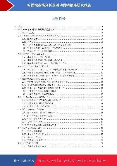 粉面馆市场前景预测与活动促销策略研究报告本报告在大量周密的市场调研基础上,依据国家统计局、相关行业协会及专业研究单位等公布和提供的大量数据,采用多种研究方法,结合盛世华研监测数据及知识体系,对行业发展进行详细的阐述和深入的分析,并在此基础上提出企业未来发展战略、市场竞争战略等实战研究成果,为企业在未来发展战略、投资布局等提供可参考的路径与方向。2023年发布时间:2023-10-22