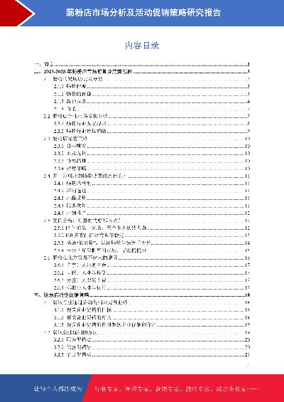 肠粉店市场前景预测与活动促销策略研究报告本报告在大量周密的市场调研基础上,依据国家统计局、相关行业协会及专业研究单位等公布和提供的大量数据,采用多种研究方法,结合盛世华研监测数据及知识体系,对行业发展进行详细的阐述和深入的分析,并在此基础上提出企业未来发展战略、市场竞争战略等实战研究成果,为企业在未来发展战略、投资布局等提供可参考的路径与方向。2023年发布时间:2023-10-22