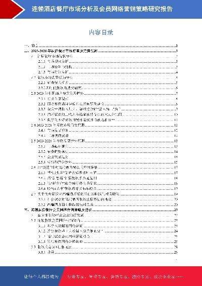 连锁酒店餐厅市场前景预测与会员网络营销策略研究报告本报告在大量周密的市场调研基础上,依据国家统计局、相关行业协会及专业研究单位等公布和提供的大量数据,采用多种研究方法,结合盛世华研监测数据及知识体系,对行业发展进行详细的阐述和深入的分析,并在此基础上提出企业未来发展战略、市场竞争战略等实战研究成果,为企业在未来发展战略、投资布局等提供可参考的路径与方向。2023年发布时间:2023-06-03