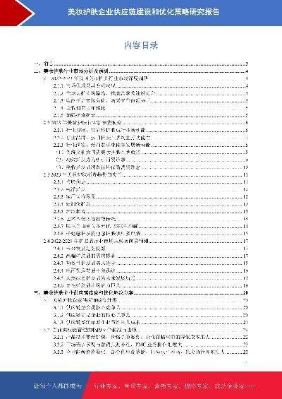 - 美妆护肤企业供应链建设和优化解决策略研究报告本报告在大量周密的市场调研基础上,依据国家统计局、相关行业协会及专业研究单位等公布和提供的大量数据,采用多种研究方法,结合盛世华研监测数据及知识体系,对行业发展进行详细的阐述和深入的分析,并在此基础上提出企业未来发展战略、市场竞争战略等实战研究成果,为企业在未来发展战略、投资布局等提供可参考的路径与方向。2023年发布时间:2023-10-14