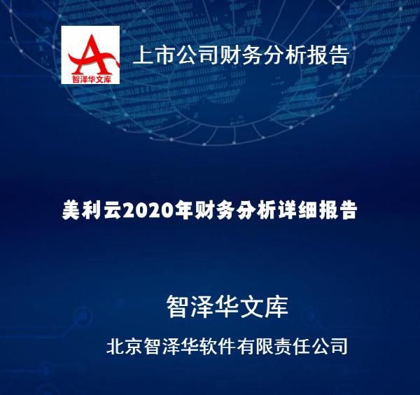 - 美利云2020年财务分析详细报告-智泽华文库北京智泽华公司将各个国家和国内外主要研究机构、咨询机构在实践中所使用的财务分析、经营评价和内部控制技术汇集起来,然后经过取粗存精、科学提炼和实践检验等加工研究过程,提出了一套独特的完全拥有自主知识产权的分析和控制理论与方法。这套分析控制方法从经营管理者如何通过财务数据来把握企业的经营、管理和决策,确保企业长期、稳定、健康发展的角度出发,重新设计、定义、完善和解释了财务分析和经营控制的指标。2020年发布时间:2022-06-16