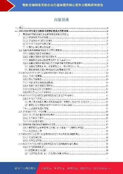 - 智能仓储物流系统企业提升核心竞争力策略研究报告本报告在大量周密的市场调研基础上,依据国家统计局、相关行业协会及专业研究单位等公布和提供的大量数据,采用多种研究方法,结合盛世华研监测数据及知识体系,对行业发展进行详细的阐述和深入的分析,并在此基础上提出企业未来发展战略、市场竞争战略等实战研究成果,为企业在未来发展战略、投资布局等提供可参考的路径与方向。2023年发布时间:2024-01-01