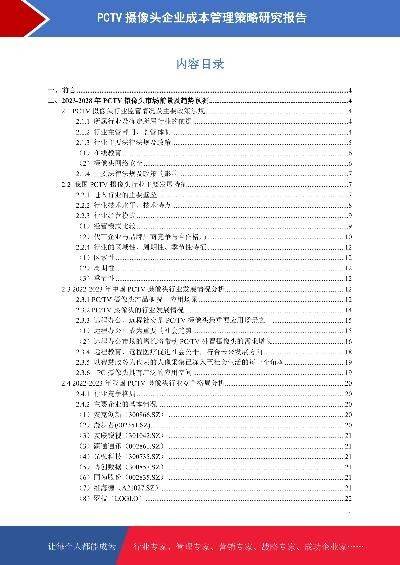PCTV摄像头企业成本管理应对策略研究报告本报告在大量周密的市场调研基础上,依据国家统计局、相关行业协会及专业研究单位等公布和提供的大量数据,采用多种研究方法,结合盛世华研监测数据及知识体系,对行业发展进行详细的阐述和深入的分析,并在此基础上提出企业未来发展战略、市场竞争战略等实战研究成果,为企业在未来发展战略、投资布局等提供可参考的路径与方向。2023年发布时间:2023-10-06