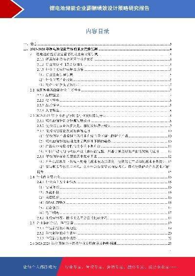锂电池储能市场前景预测与薪酬绩效设计策略研究报告本报告在大量周密的市场调研基础上,依据国家统计局、相关行业协会及专业研究单位等公布和提供的大量数据,采用多种研究方法,结合盛世华研监测数据及知识体系,对行业发展进行详细的阐述和深入的分析,并在此基础上提出企业未来发展战略、市场竞争战略等实战研究成果,为企业在未来发展战略、投资布局等提供可参考的路径与方向。2023年发布时间:2023-07-03