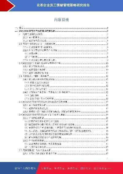 - 花茶企业员工情绪管理策略研究报告本报告在大量周密的市场调研基础上,依据国家统计局、相关行业协会及专业研究单位等公布和提供的大量数据,采用多种研究方法,结合盛世华研监测数据及知识体系,对行业发展进行详细的阐述和深入的分析,并在此基础上提出企业未来发展战略、市场竞争战略等实战研究成果,为企业在未来发展战略、投资布局等提供可参考的路径与方向。2023年发布时间:2023-10-26