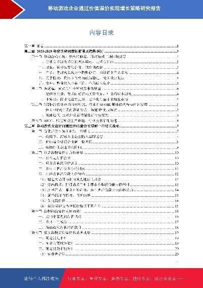 - 移动游戏企业通过价值溢价实现新一轮增长策略研究报告本报告在大量周密的市场调研基础上,依据国家统计局、相关行业协会及专业研究单位等公布和提供的大量数据,采用多种研究方法,结合盛世华研监测数据及知识体系,对行业发展进行详细的阐述和深入的分析,并在此基础上提出企业未来发展战略、市场竞争战略等实战研究成果,为企业在未来发展战略、投资布局等提供可参考的路径与方向。2024年发布时间:2024-06-25